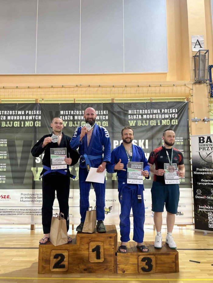 chor. SOP Jacek Trofimiuk – złoty medal i tytuł Mistrza Polski w kategorii wagowej 82,3 kg. GI MASTER 1 niebieskie pasy.