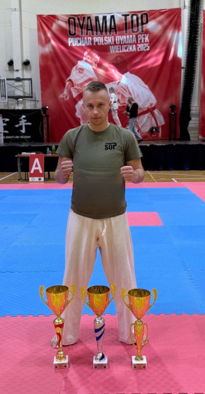 mł. chor. SOP Jakub Kowalik wziął udział w XXI OYAMA TOP – Pucharze Polski OYAMA PFK w Wieliczce i zdobył aż trzy złote medale! 🥇🥇🥇