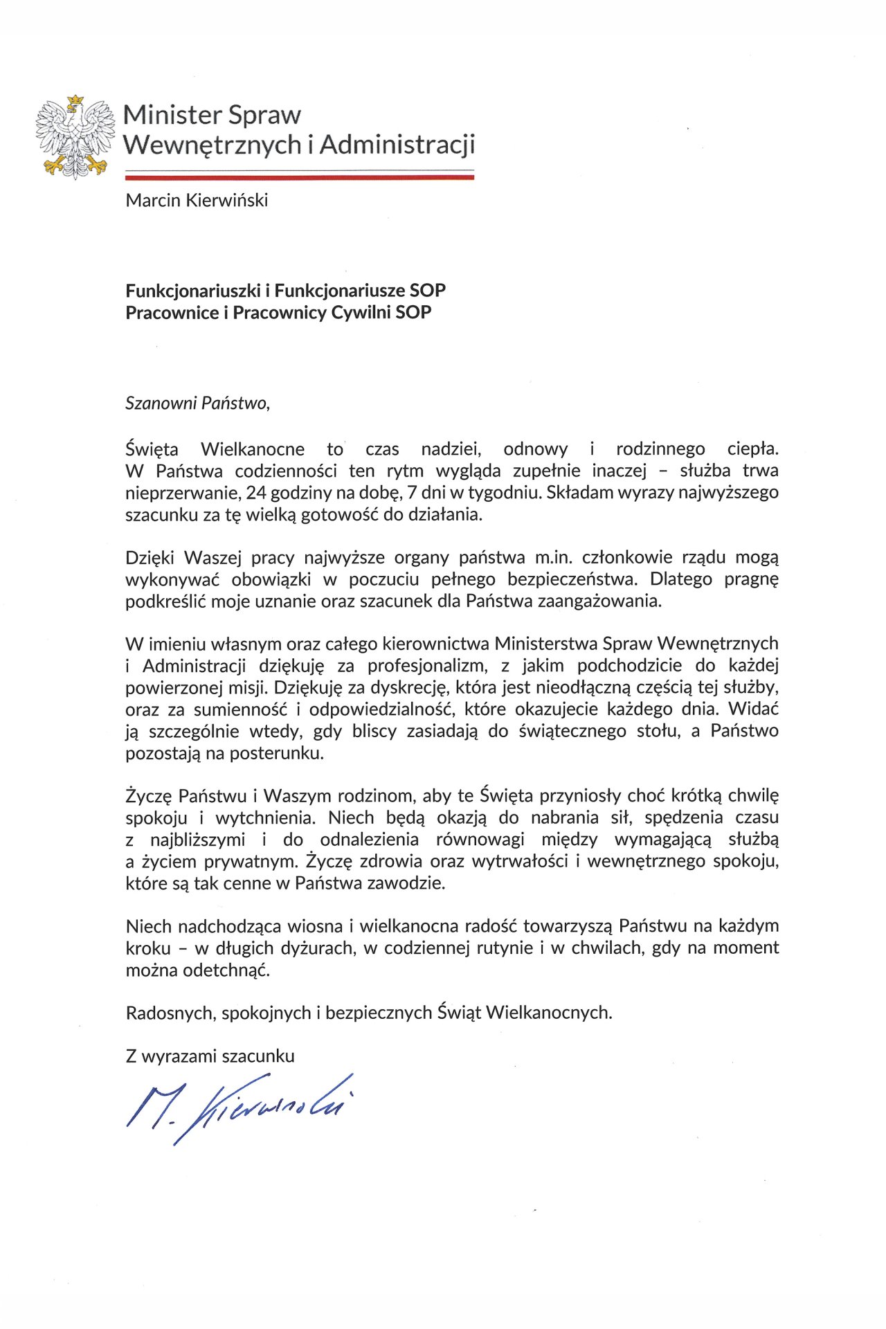 List Pana Ministra Marcina Kierwińskiego Wielkanoc 2026